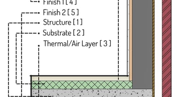 For example, if the core of a floor contains a Thermal/Air layer [3] and a Finish 2 layer [5], these layers can pass through the Structure [1] and Substrate [2] layers if they are positioned outside of the core boundary.