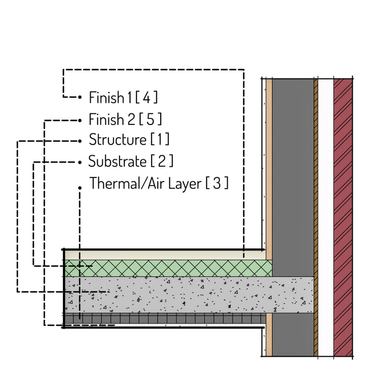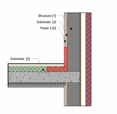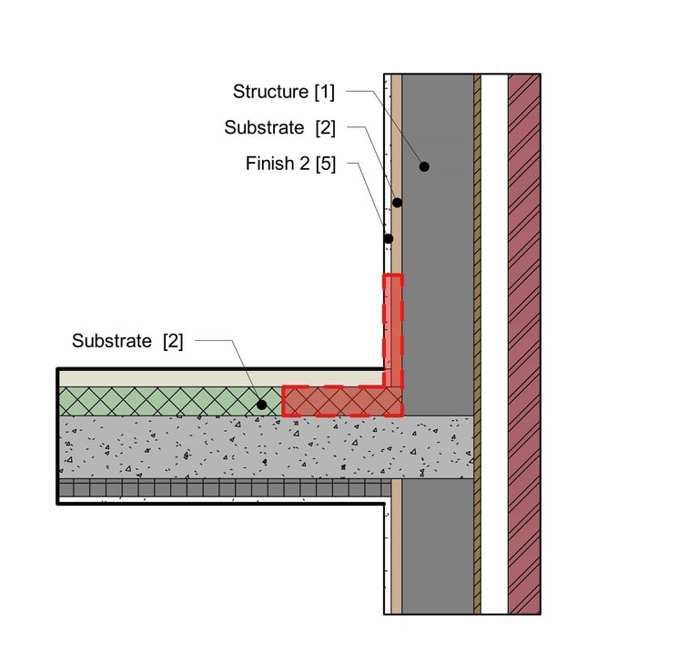 4. The final layer of the floor and the interior layer of the wall have the same priority as Finish 2 [5], and they are made of the same materials. When these layers join, the connection is simplified if both layers consist of the same material.