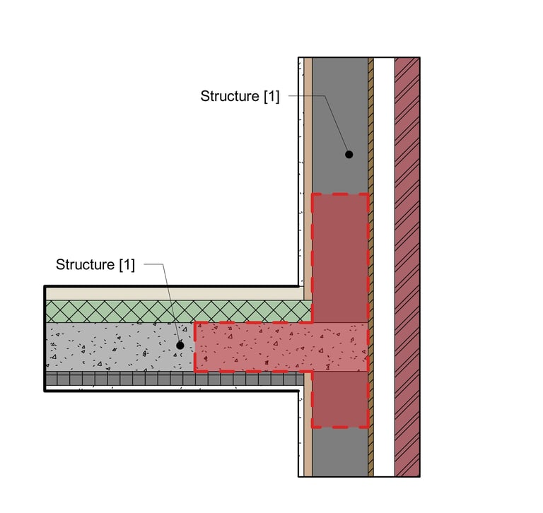 1. Since Revit first connects and joins the layers with the highest priority, we can see that the structural layer of the floor cuts through all of the layers with lower priority on the interior side and continues until it reaches the core boundary.