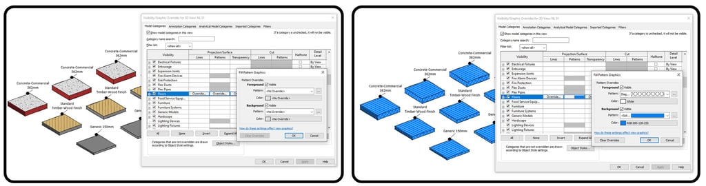 Difference between changing a pattern directly from the material editor and changing it from Visibility and Graphics?